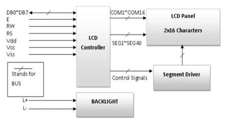 A block diagram of driving an lcd panel. The lcd display is placed near the entry gate. The actual view area of the lcd is 60 mm x 32.6 mm. The lcd controller determines the address of the desired information and then reads the data. The cfag12864b graphical liquid crystal display (pin 1 is leftmost) 4.2 pin assignments